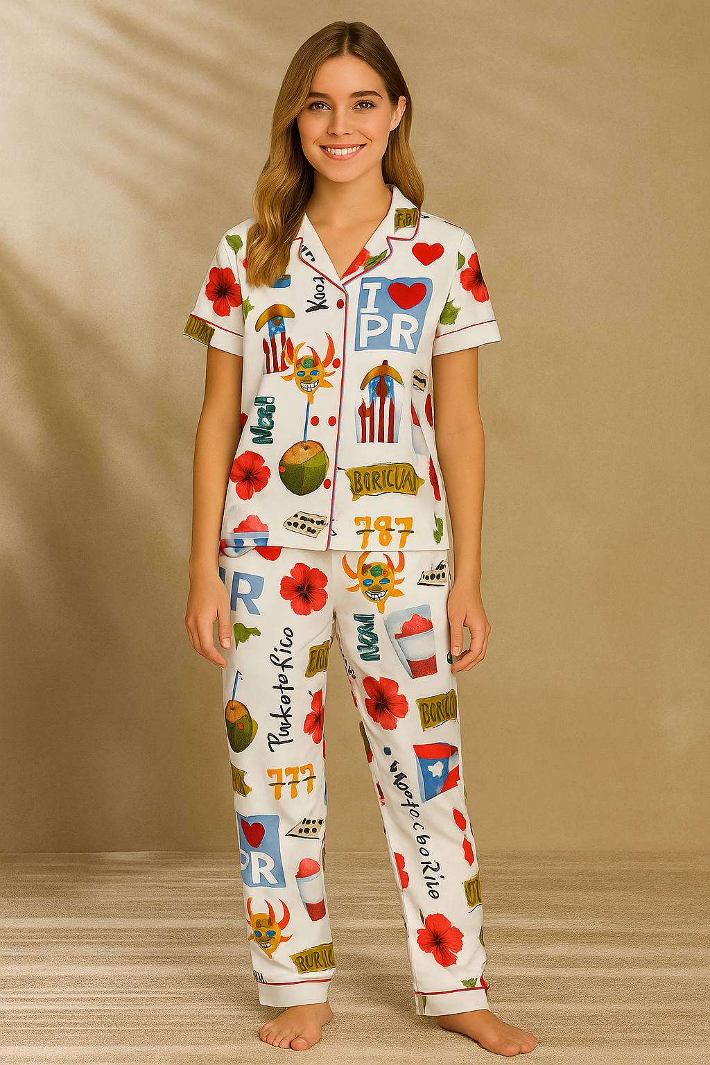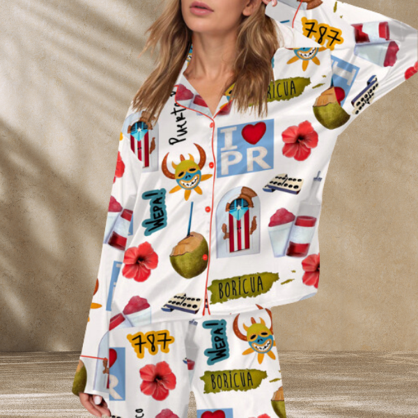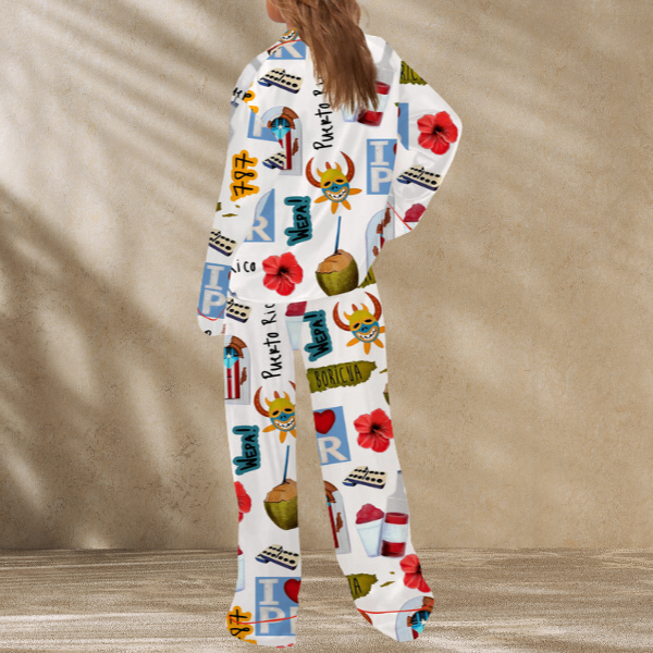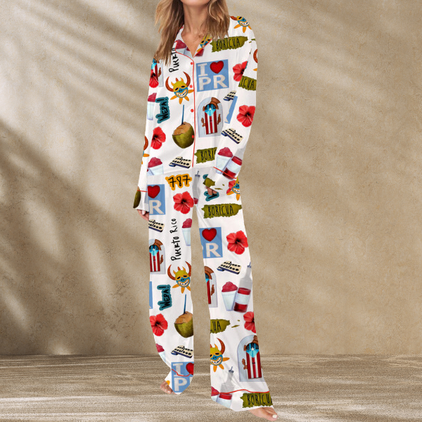 Puerto Rico Travel Satin Pajama Set For Women
