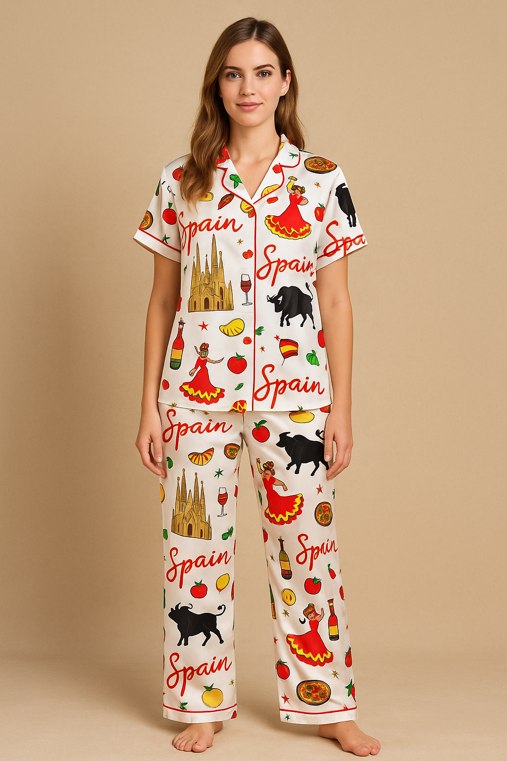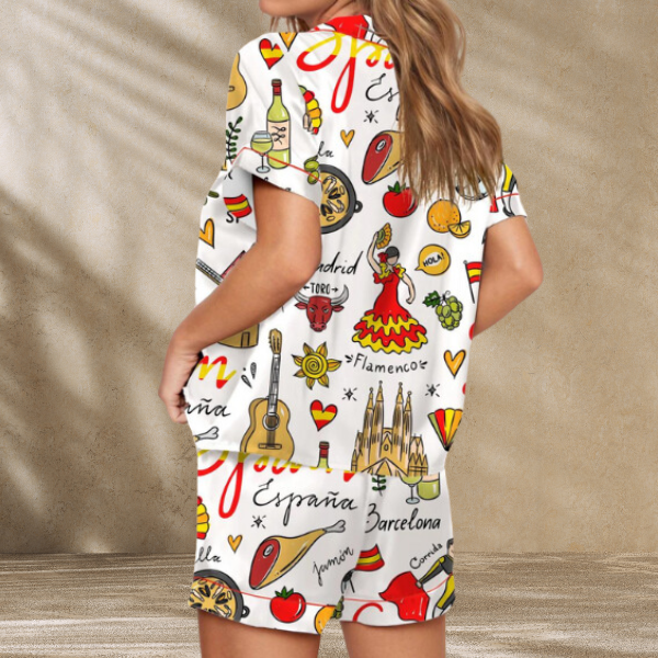 Spain Travel Satin Pajama Set For Women